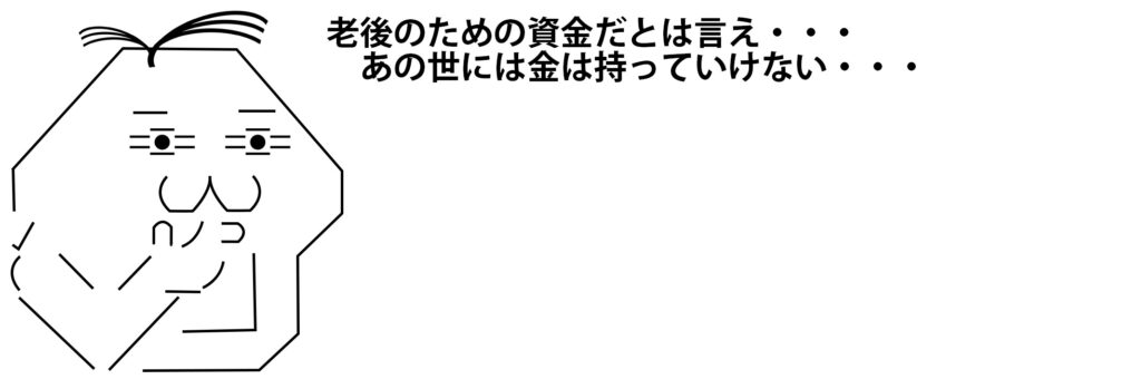 死んでからは使えないから、ある程度は使っておかないといけないんだが、未だに必要以上に金を使うのが怖い。