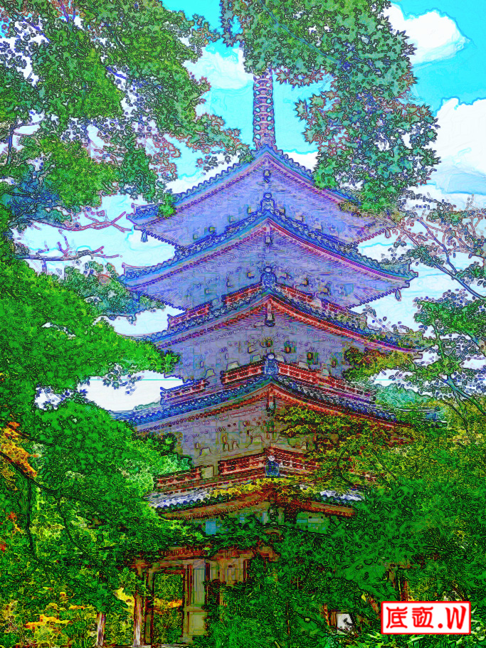 空を差し替えて線を輪郭検出の2重と油彩の合わせで処理。