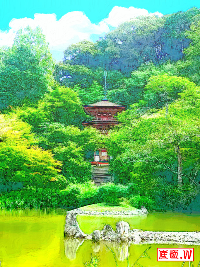 浄瑠璃寺で撮影した写真を加工。