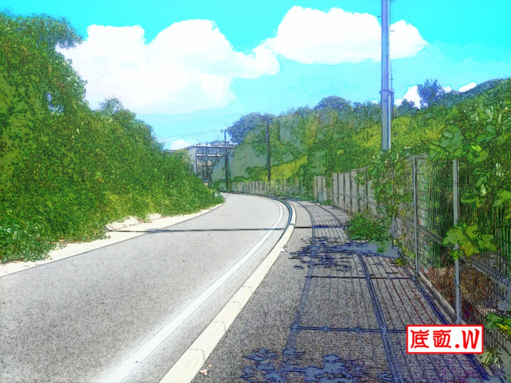 空を差し替えて線を輪郭検出の2重と油彩の合わせで処理。