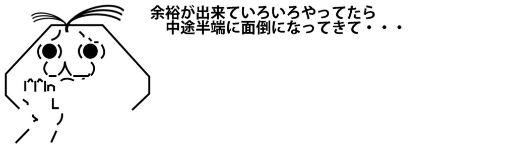 しかし、余裕が出来て色々やってたら、中途半端に時間が余るせいで、面倒になって後回しにしちゃうの。