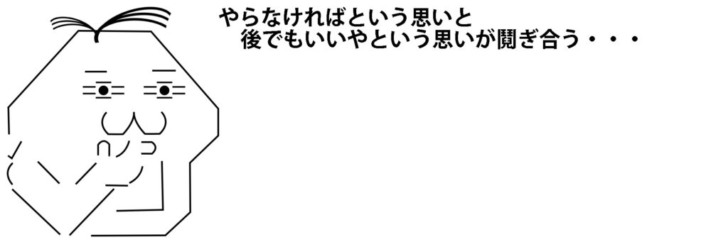 やらなくちゃならないと思いつつ、まあ後でもいいやという思いが鬩ぎあう。