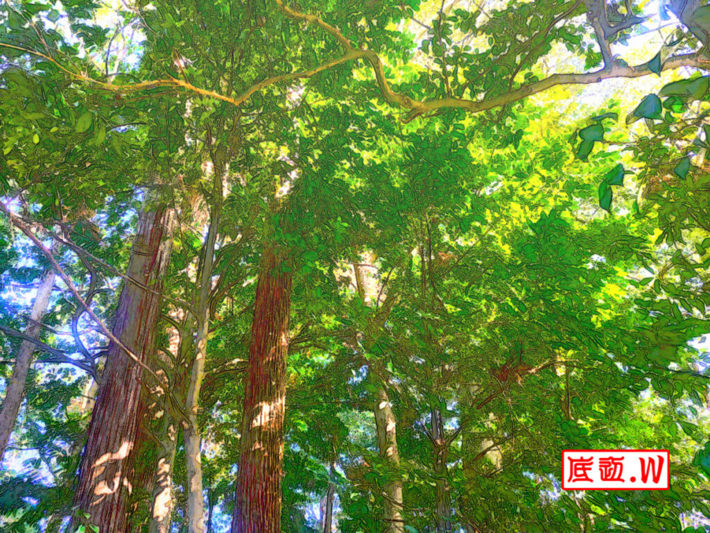 近所の森で撮影した写真を加工。