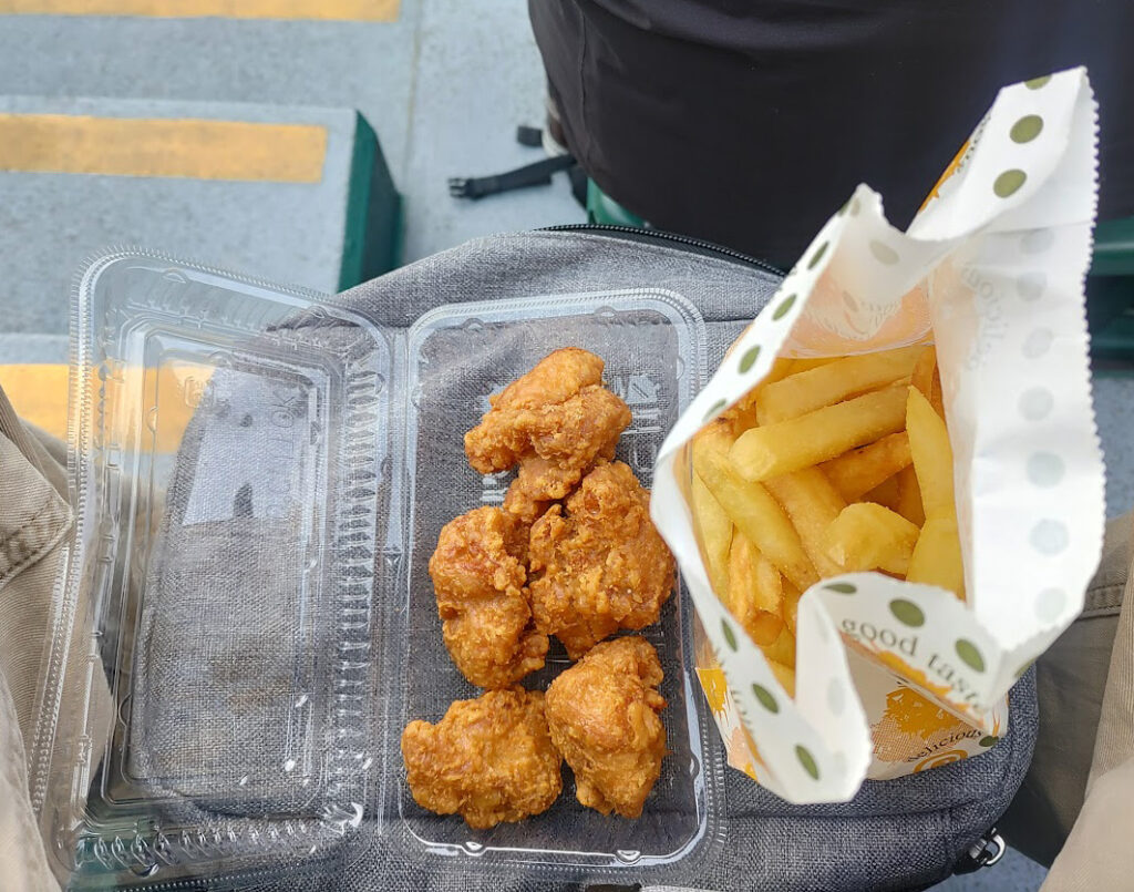 そして席へ帰る途中に買った、から揚げとポテト。