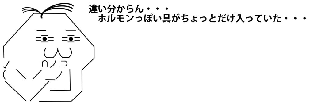ホルモンっぽい小さい物体が4、5個入ってた以外の違い無い。