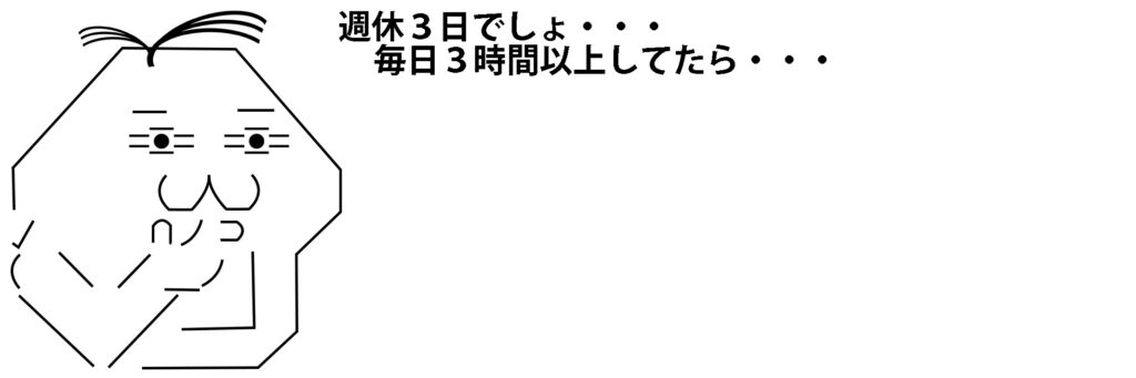 毎日3時間してるとしたら、週休3日だから4日×3時間で12時間。